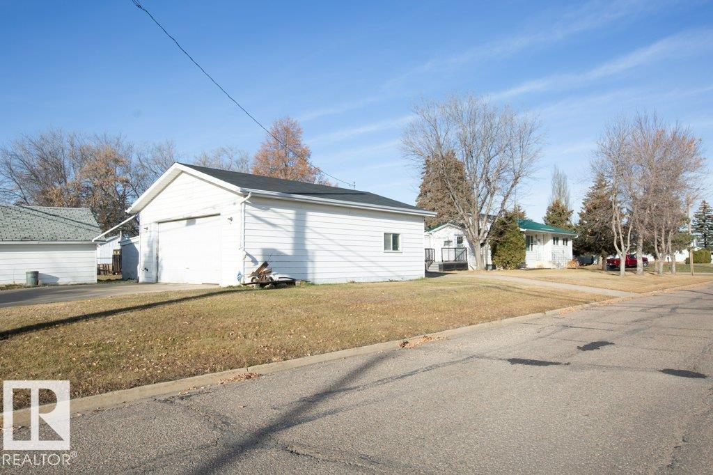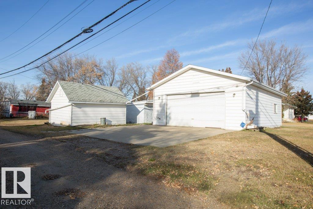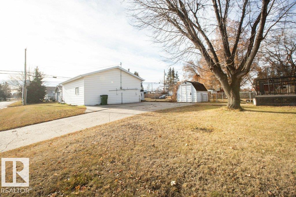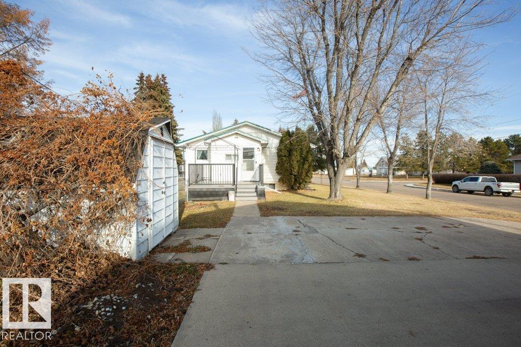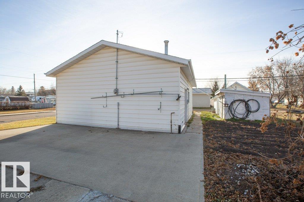 Charming 1069 sq ft 3+1 bedroom home on a massive 11,214 sq ft corner lot with a heated 32x24 garage! Home features metal roof, vinyl siding with extra insulation, upgraded vinyl windows, newer oak kitchen, upgraded appliances, central A/C, fresh paint, and renovated bathroom. Deck built last year for relaxing or entertaining. Additional boot room with coat closets provides room for your when your company arrives. Basement is mostly unfinished and ready for your ideas, includes a bedroom/office and storage room. Furnace rebuilt. Outside boasts chain-link fenced dog run, multiple storage sheds, and a vegetable garden. The 32x24 heated garage offers 220V and overhead door. Ample parking with alley and street access. All this within walking distance of the elementary school, playground, outdoor rink, and aquatic center!